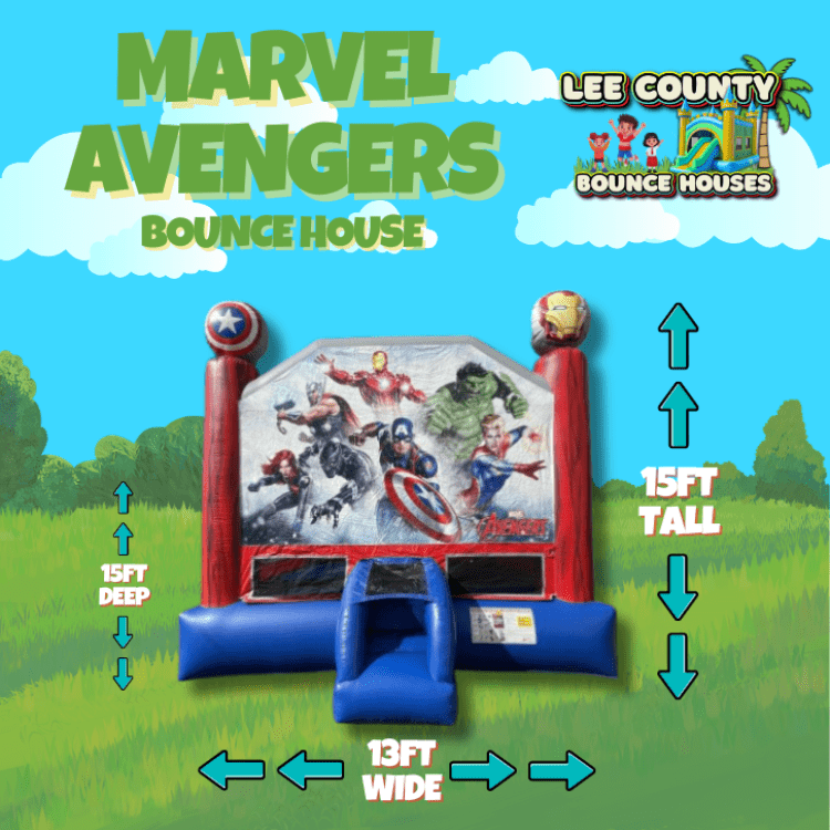 Step into the ultimate superhero experience with our Avengers Bounce House! This inflatable marvel is adorned with vibrant images of Iron Man, Captain America, Thor, Black Widow, and the rest of the iconic Avengers team. Designed for action-packed fun, kids can jump, play, and unleash their inner hero in a safe and bouncy environment. Whether it's a birthday party or a special event, this Avengers-themed bounce house guarantees hours of entertainment, adventure, and heroic excitement for all young Avengers fans!
